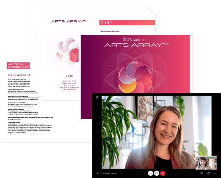 An Arts Array™ is a personalized, creative wellness plan from Lift Parade Arts — a flexible, six-part guide-map that helps you explore, practice, and sustain a creative life.